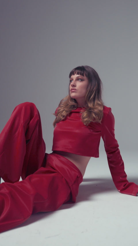We're loving the spicy, but can you handle the heat? Red metallic jersey fabric, so soft on the inside you won't want to take it off. Cool loose design will be sure to elevate your wardrobe. Pair it with a matching top and go out in style.